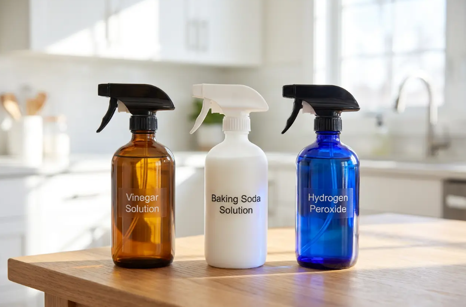 Natural Disinfectants for Countertops: Disinfect counters with hydrogen peroxide or vinegar (but not together—they create peracetic acid, which is irritating). Spray surfaces, let sit 5-10 minutes, then wipe clean. This kills 99.9% of bacteria without toxic chemicals.